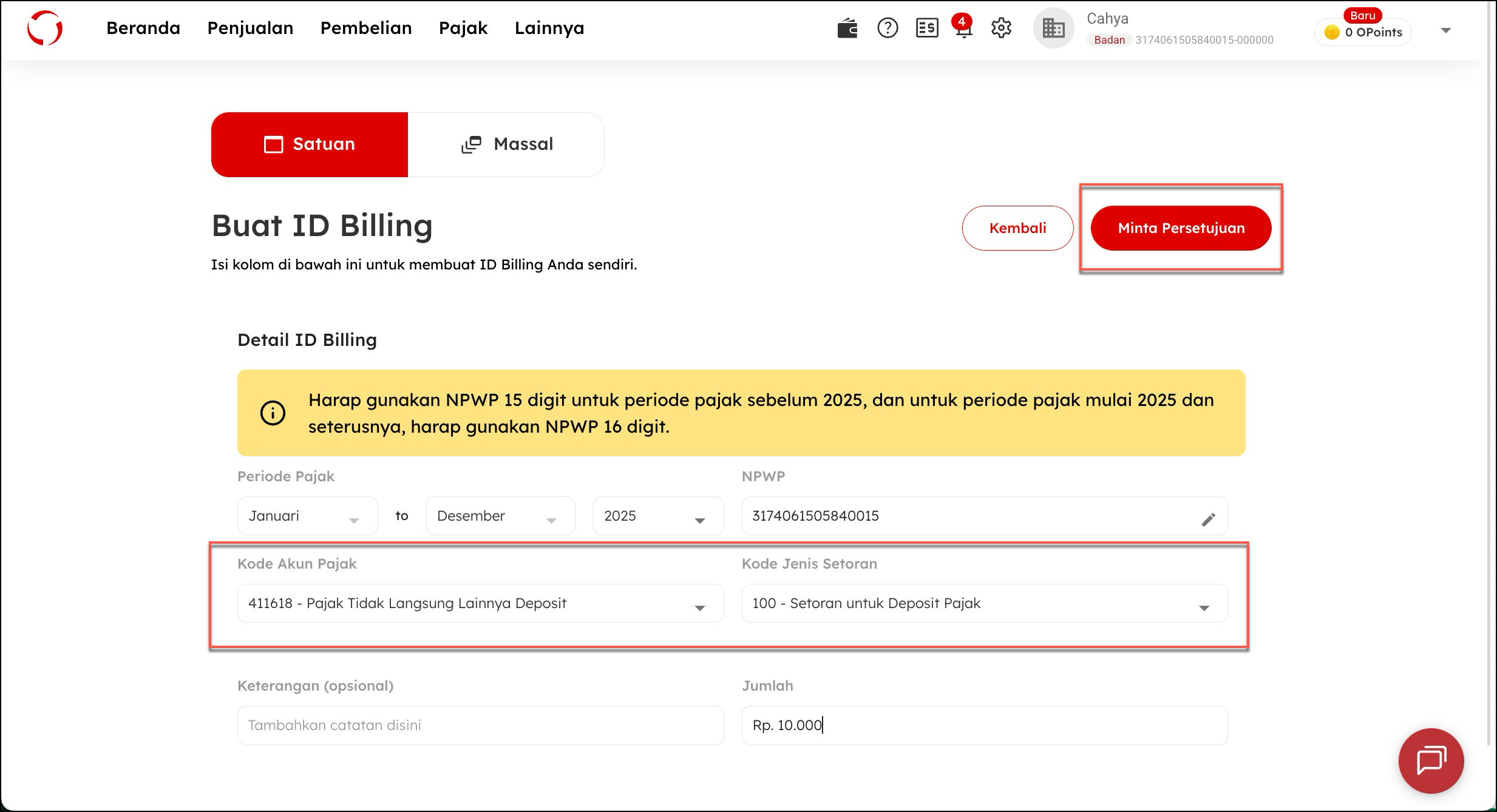 Setelah semua data terisi dengan benar, klik tombol Minta Persetujuan.