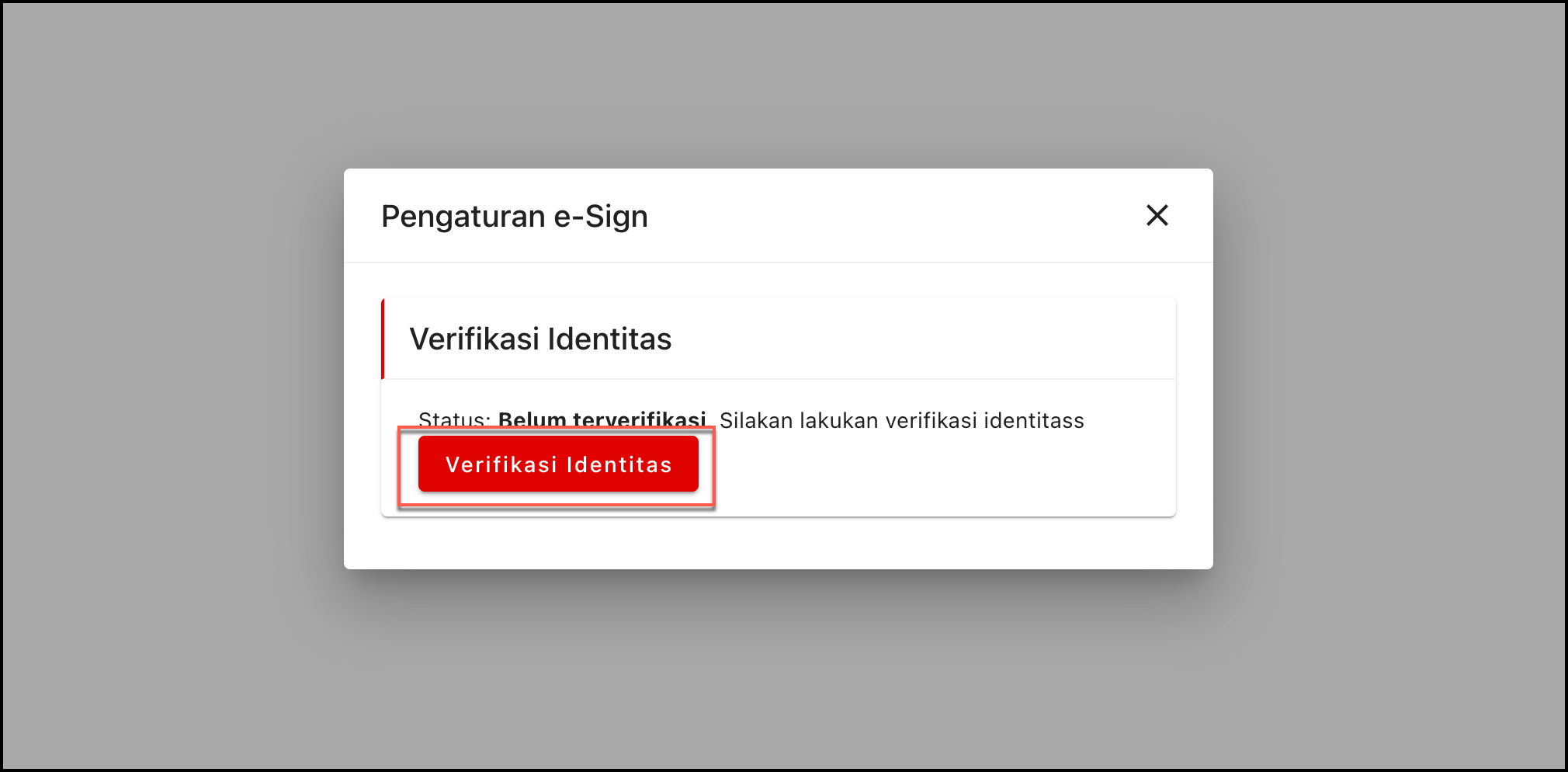 Jika verifikasi berhasil, akan muncul halaman di bawah ini. Lanjut dengan menambah spesimen tanda tangan dengan memilih “Unggah Gambar” atau “Gambar Tanda Tangan”