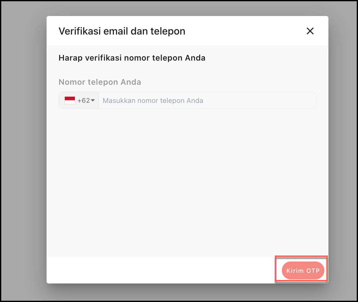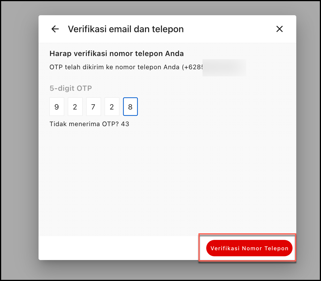- Cek SMS yang masuk ke nomor telepon Anda, masukkan nomor OTP, lalu klik tombol “Verifikasi Nomor Telepon”