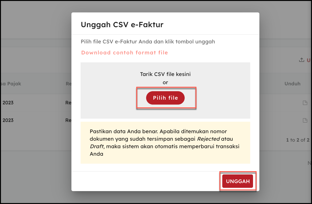 - Klik Pilih file, setelah itu Unggah,