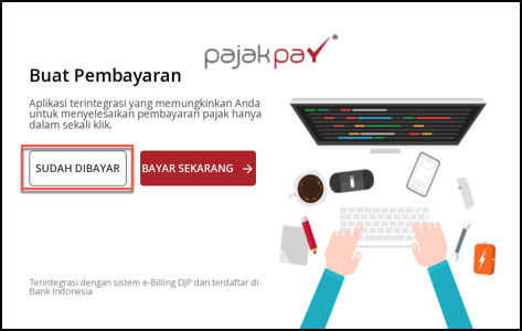 - Akan muncul pop-up metode pembayaran yang telah dilakukan. Jika Anda sudah memiliki NTPN/SSP maka klik menu Sudah Bayar.