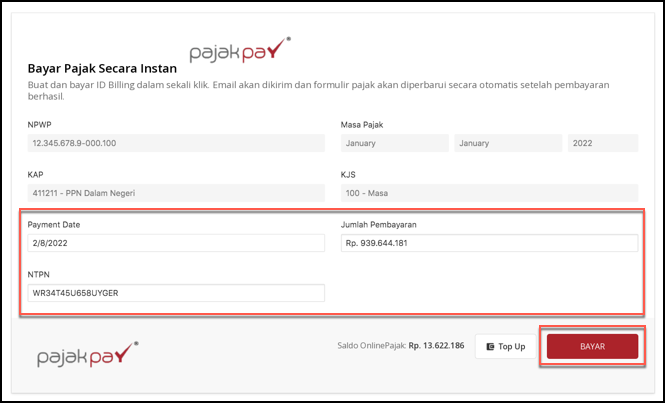 Jika Anda telah lakukan pembayaran pajak melalui bank persepsi dan mendapatkan NTPN atau SSP, cara untuk melengkapinya pada menu eFaktur OnlinePajak dapat ikuti panduan berikut: