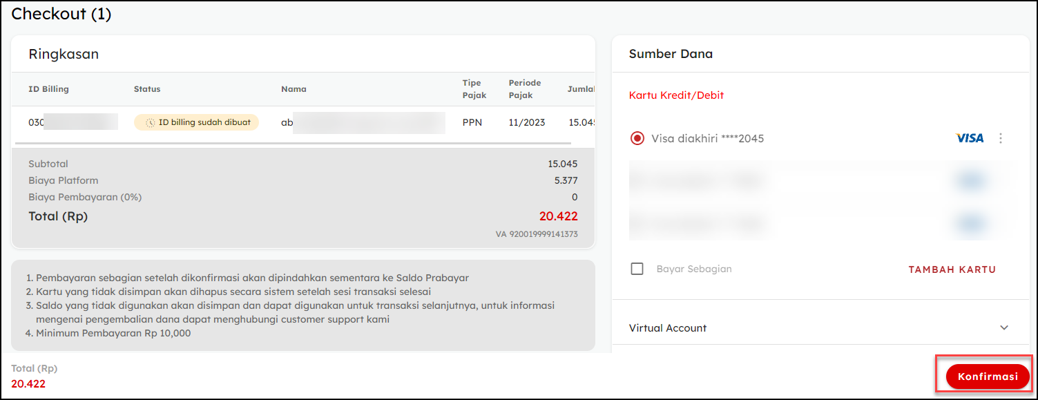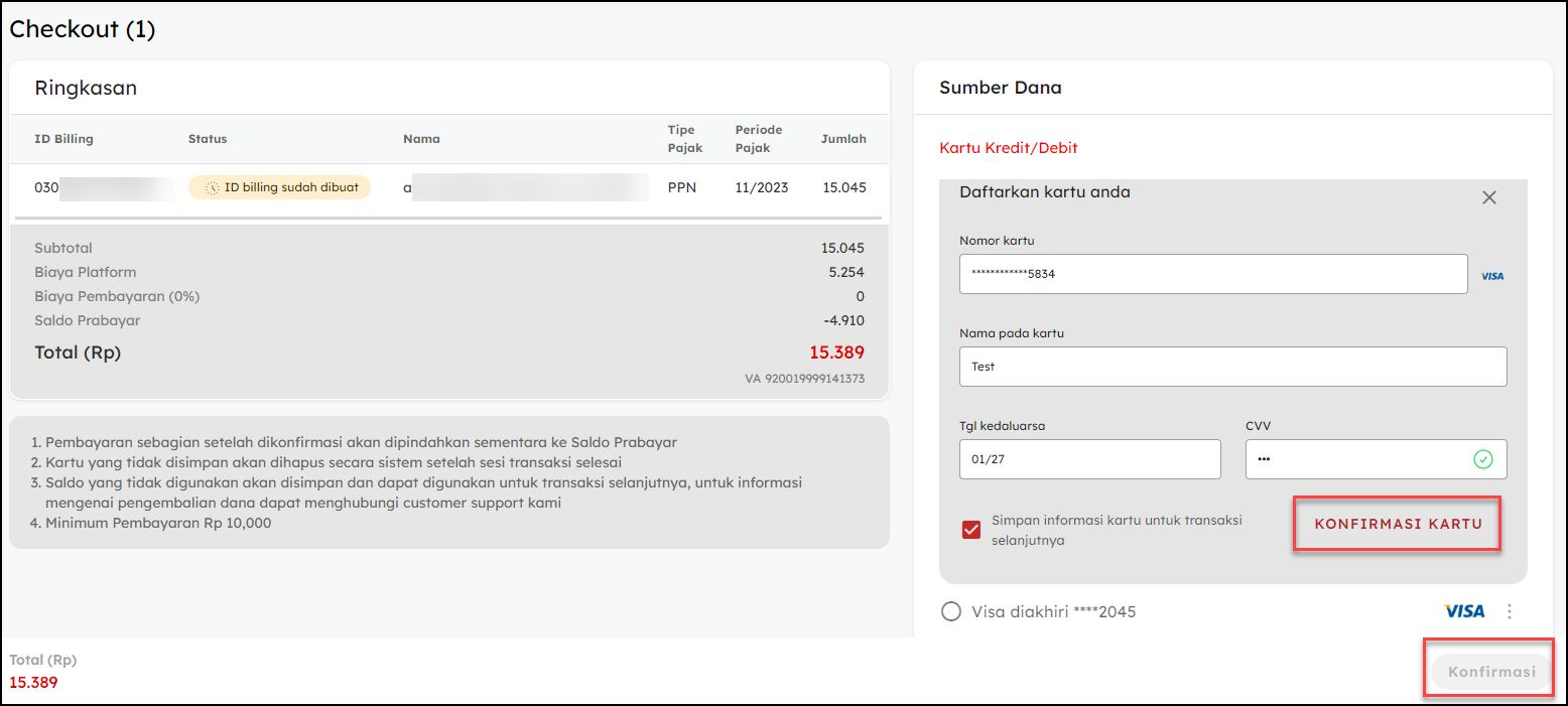 - Lengkapi informasi kartu kredit Anda, kemudian klik Konfirmasi Kartu.