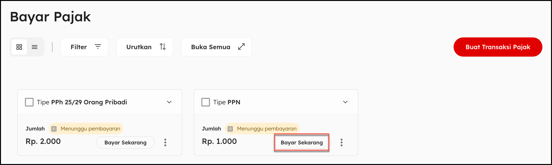 - Pada menu Semua Pembayaran Pajak, pilih menu Filter kemudian klik Bayar Pajak .