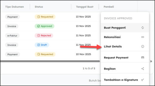 - Klik titik tiga kemudian pilih Lihat Detail untuk membuka halaman transaksi