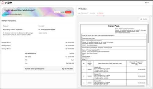 - Lawan transaksi dapat mengunduh semua dokumen transaksi tersebut secara langsung tanpa perlu login ke OnlinePajak.