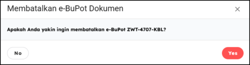 Akan muncul jendela pop-up konfirmasi di layar. Klik Ya untuk melanjutkan dan mengonfirmasi pembatalan Faktur Pajak.