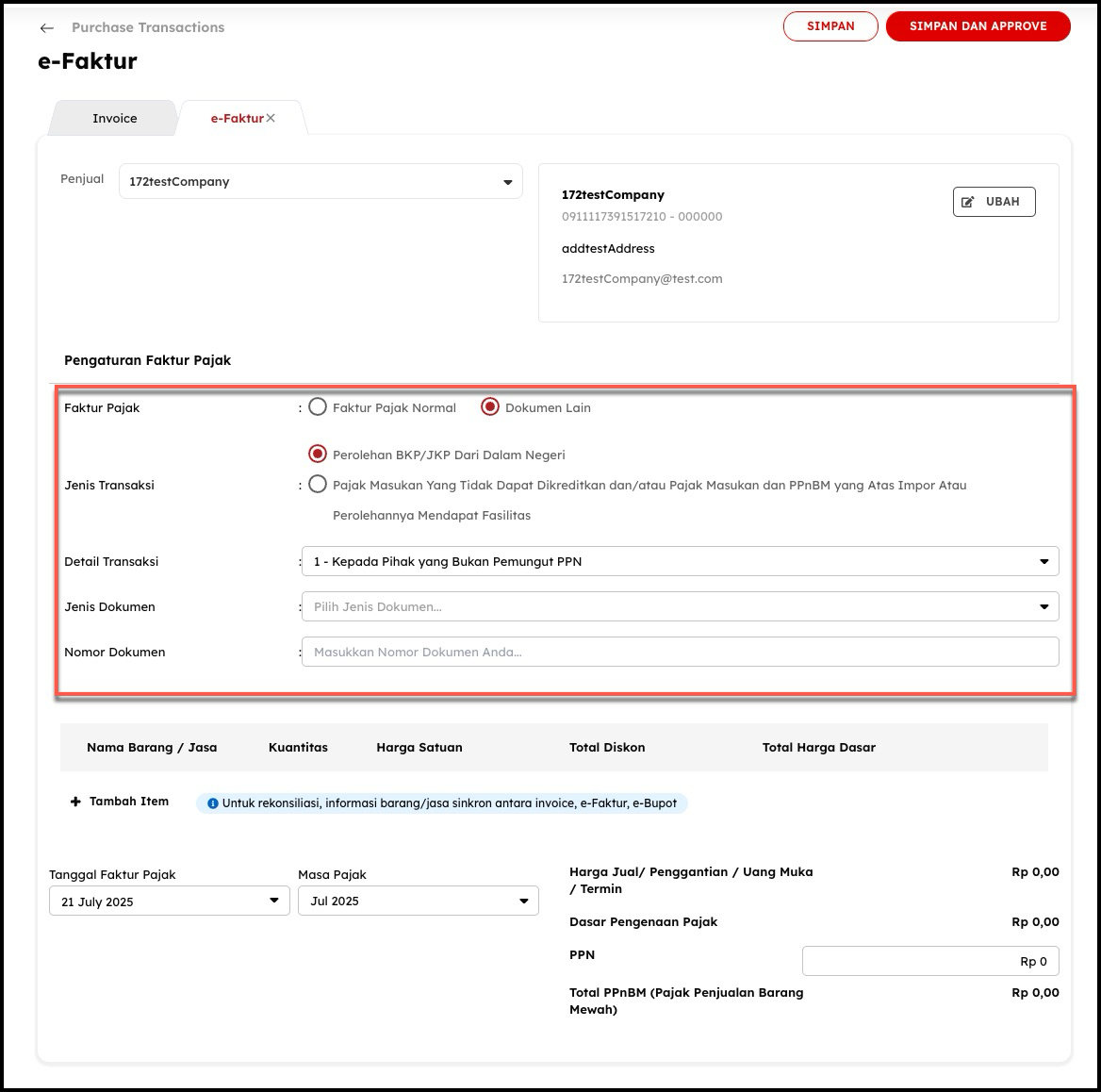Pilih tab PPN dan pilih dokumen lain, isi jenis transaksi, detail transaksi, jenis dokumen dan nomor dokumen. Setelah itu pilih simpan dan lakukan approval seperti biasa.