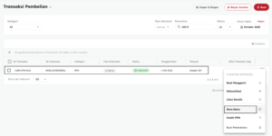 - Klik ikon tiga titik di sisi kanan transaksi FPM yang telah disetujui, kemudian pilih opsi “Nota Retur”
