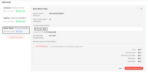 - Gulir ke bawah hingga bagian Dokumen. Anda akan menemukan dokumen Nota Retur yang otomatis terbuat dengan status Draft.