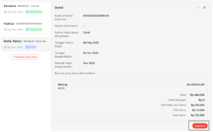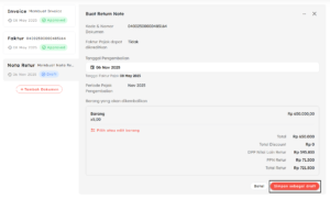- Setelah semua informasi sudah benar, klik Approve untuk menyetujui Nota Retur.
