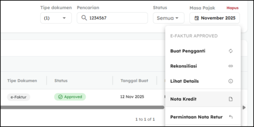Klik kembali ikon titik tiga di sisi kanan transaksi, lalu pilih Approve untuk menyetujui pembatalan faktur pajak.