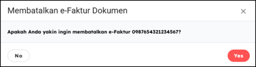 Sistem akan menampilkan pop-up konfirmasi pembatalan. Klik Yes untuk melanjutkan proses.