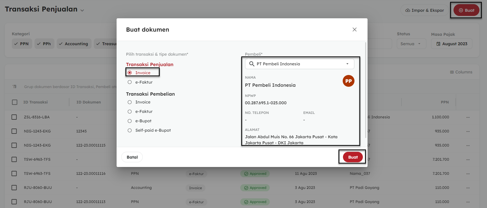 - Jika Anda belum memiliki data pembeli, pada kolom Pembeli pilih + Informasi Pembeli,