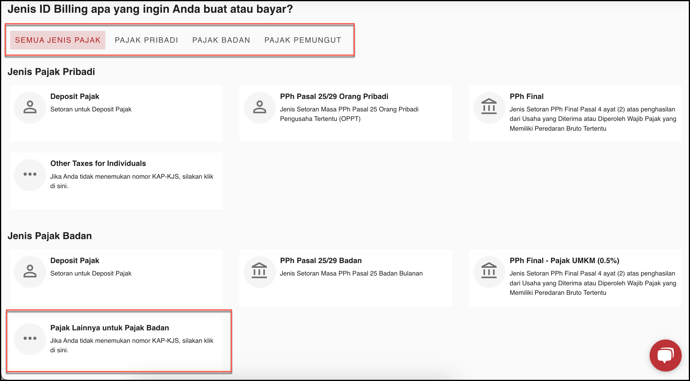 - Sesuaikan jenis pajak yang akan Anda bayarkan.