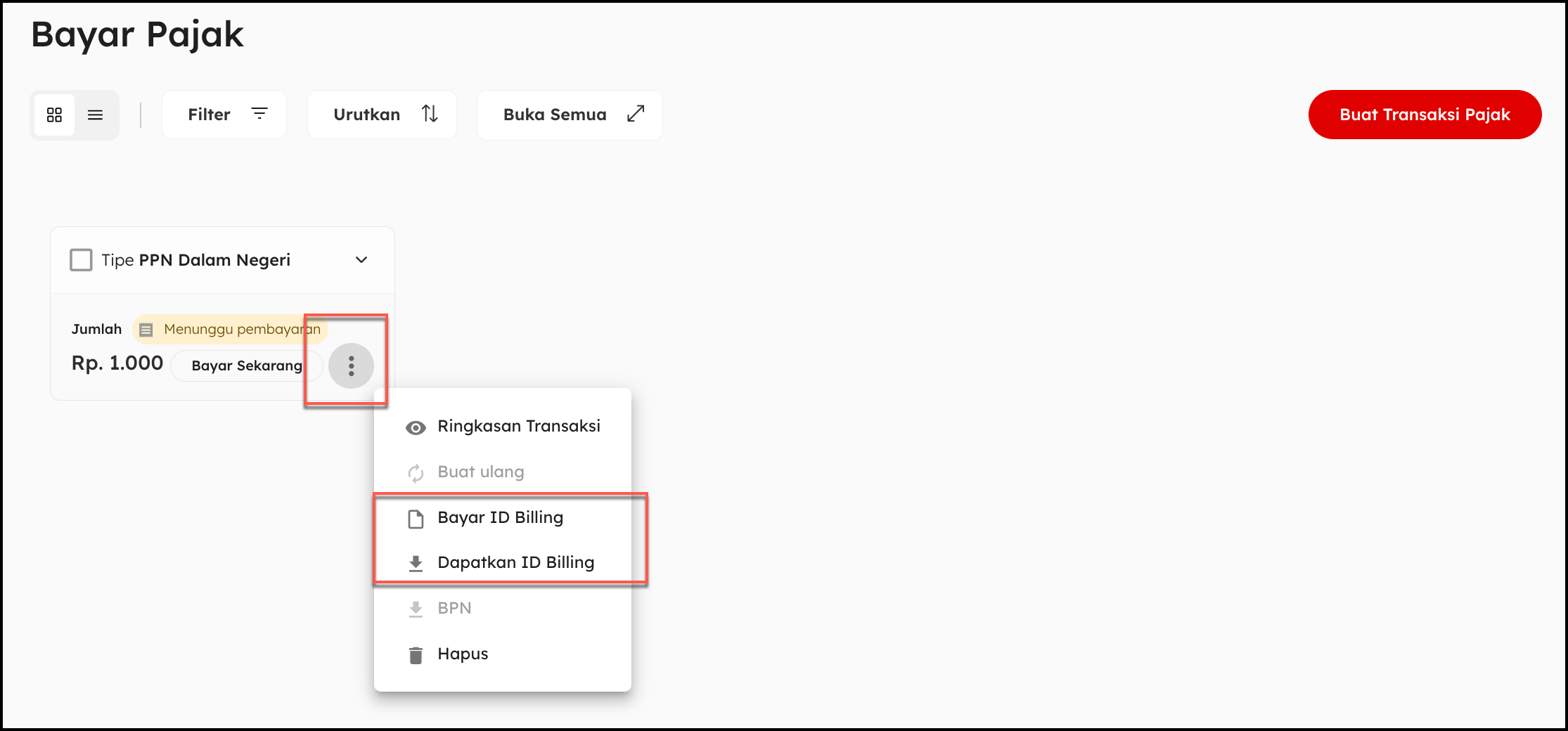 - Anda akan diberikan ID Billing yang telah dibuat. Gunakan ID Billing ini untuk melakukan pembayaran melalui PajakPay. Untuk panduan langkah-langkah pembayaran dengan PajakPay, silakan ikuti petunjuk yang tersedia.