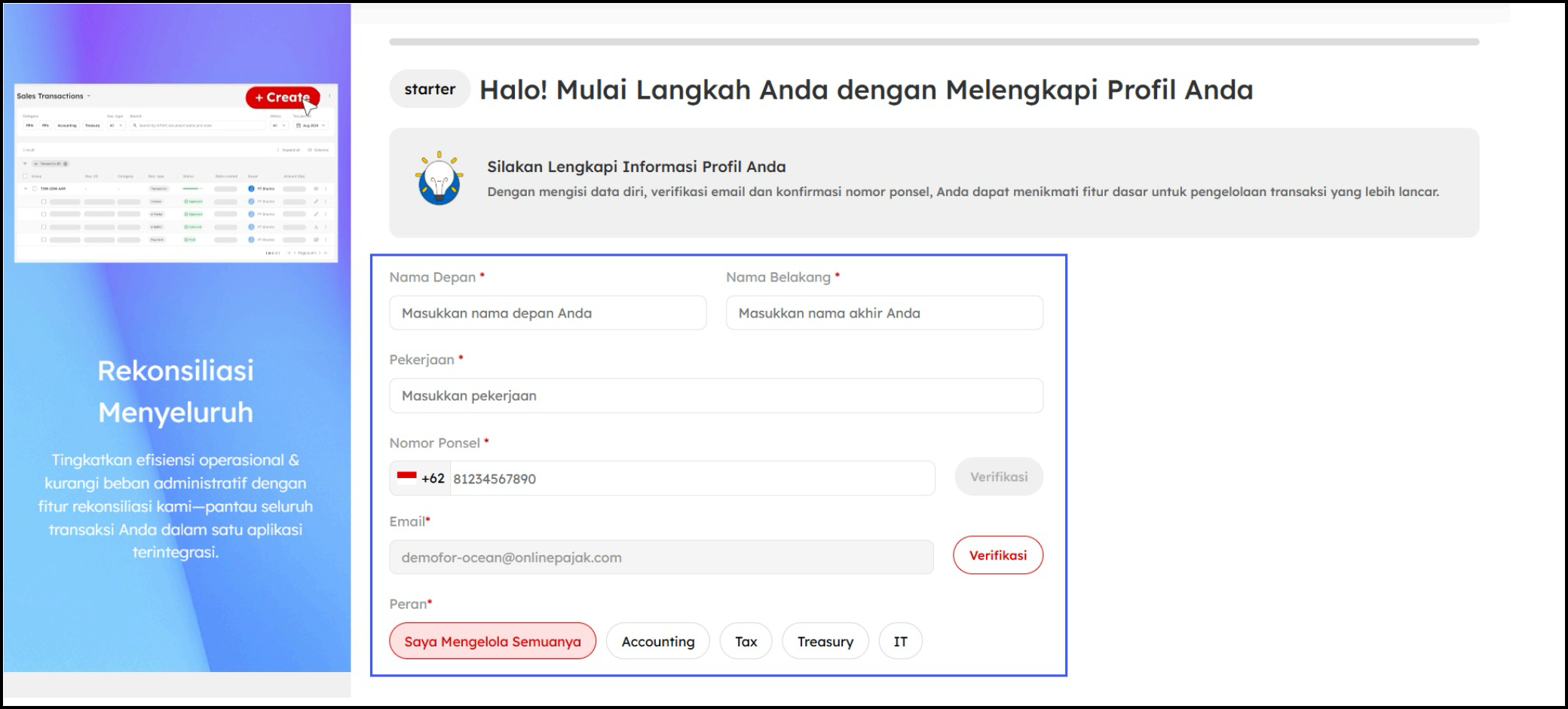 Setelah berhasil mendaftar, lanjutkan dengan mengisi data pribadi untuk memvalidasi akun:- Nama Depan