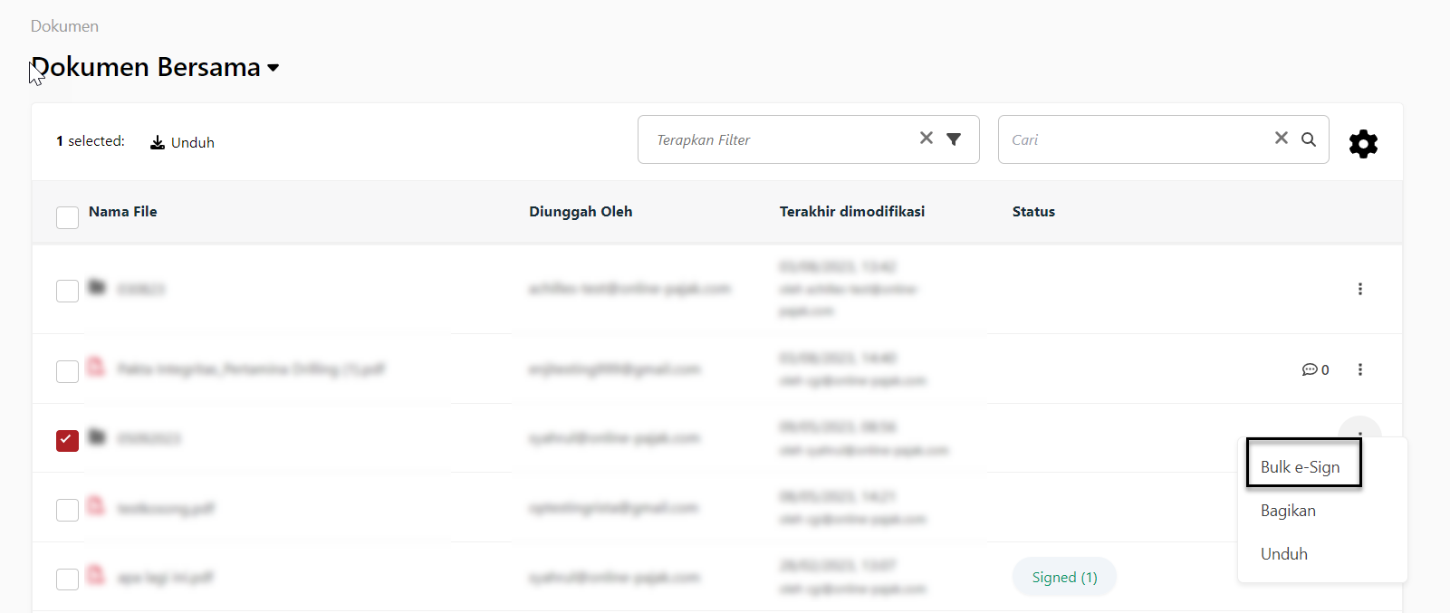 Berikut langkah langkah yang dapat Anda ikuti untuk bulk e-Signature