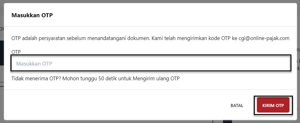 Masukkan kode OTP yang dikirim ke email & nomor telepon Anda. Lalu klik Kirim OTP