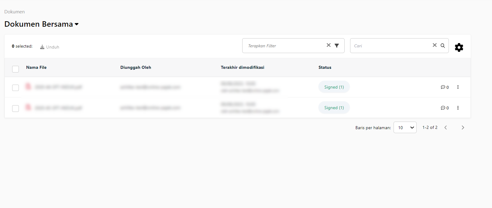 Untuk menandatangani dokumen yang sudah dibagikan ke akun Anda, di halaman list dokumen, pilih Dokumen Bersama