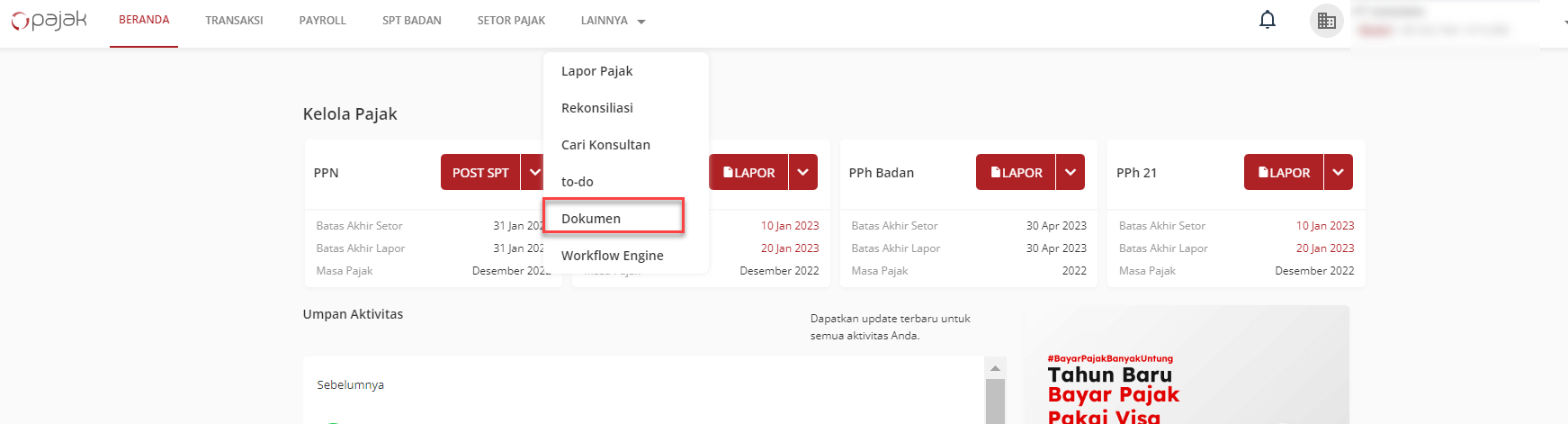 - Pada halaman utama OnlinePajak Buka Tab Menu Lainnya – Dokumen