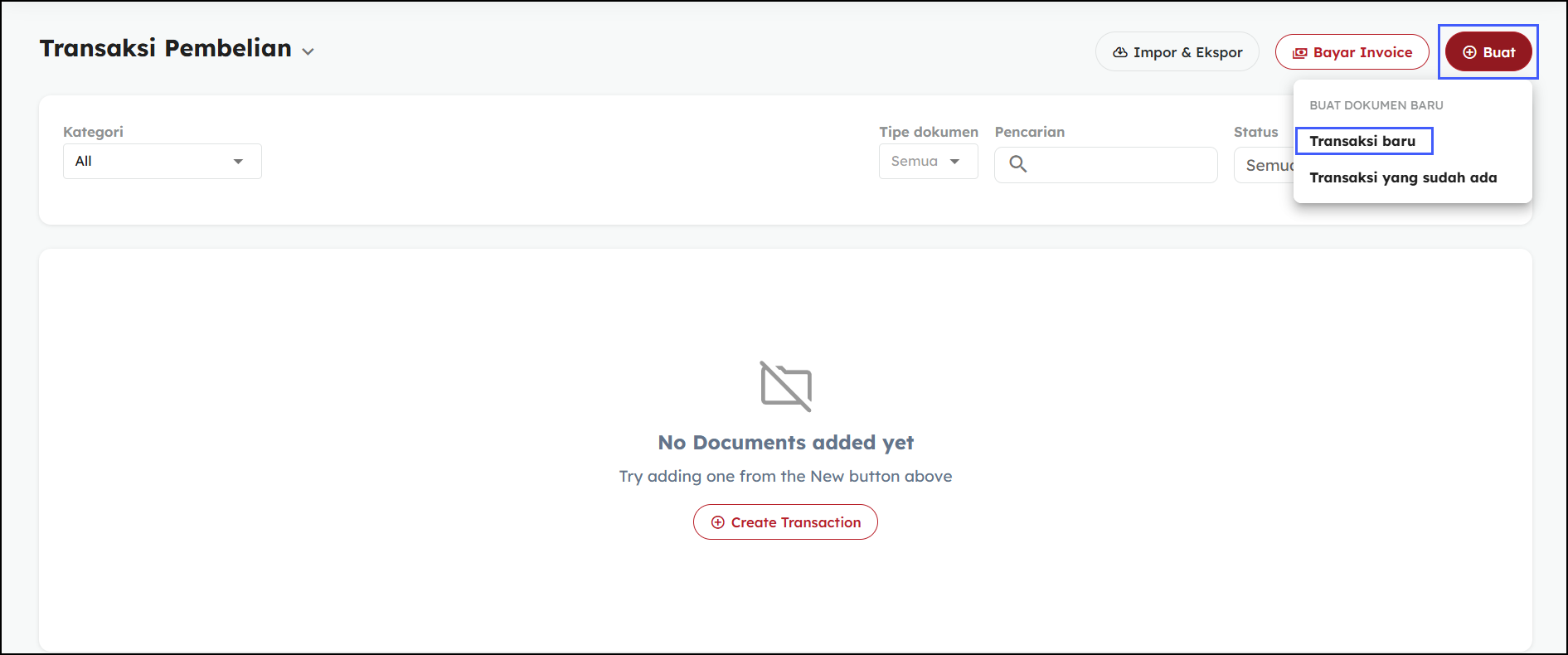 Klik tombol “Buat” lalu pilih “Transaksi Baru”.