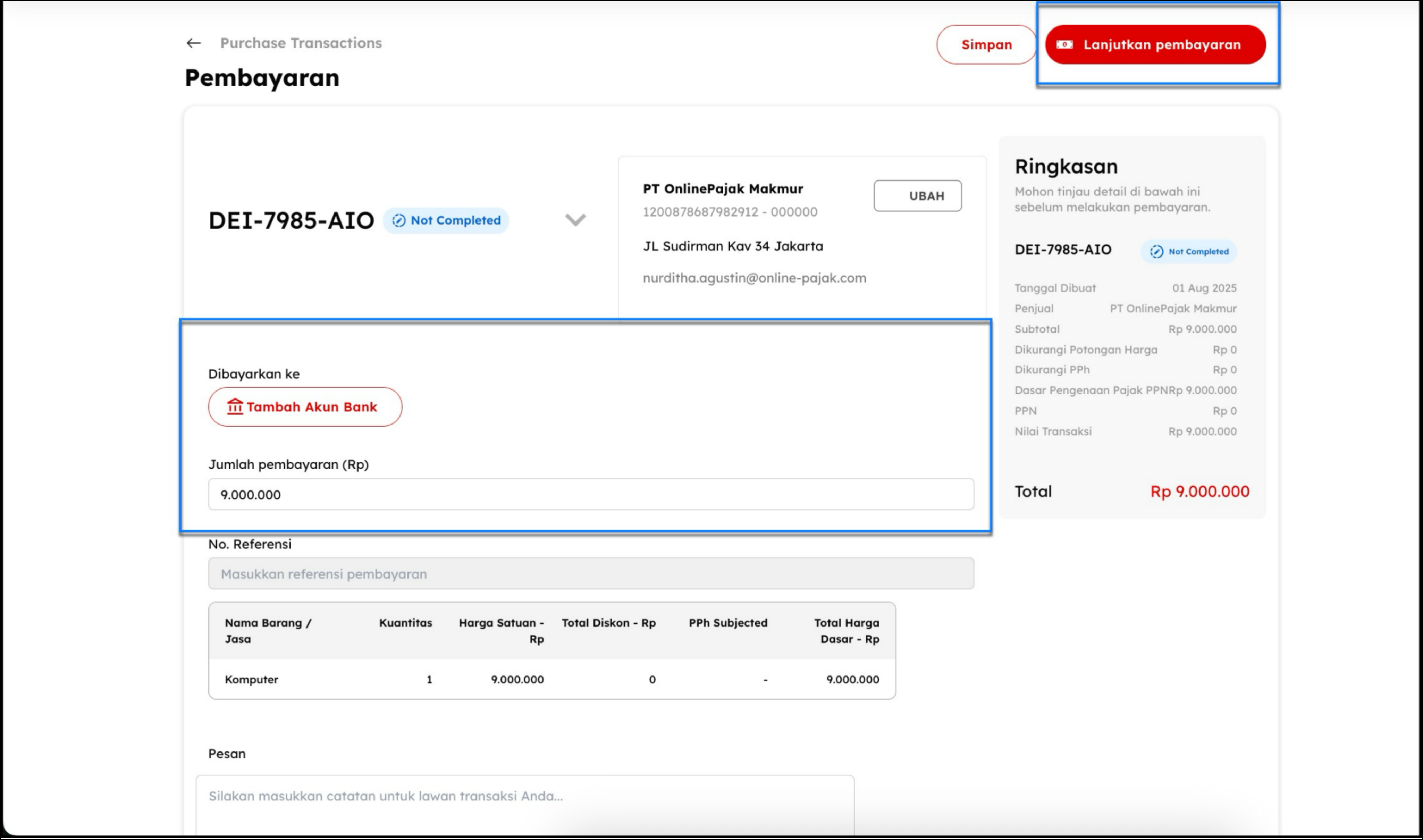 Jika seluruh data sudah benar, klik “Simpan dan Approve”, Anda akan diarahkan ke halaman daftar transaksi penjualan.