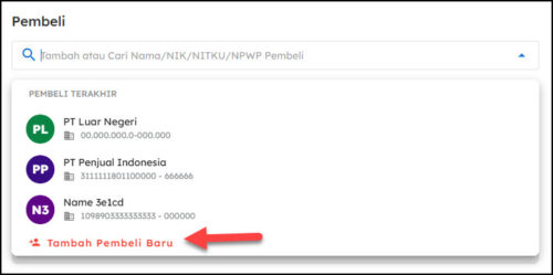 Pada kolom Pembeli, Anda akan melihat daftar lawan transaksi yang sudah pernah dibuat sebelumnya.