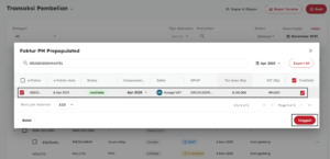 - Centang transaksi Faktur Pajak yang ingin diunggah.