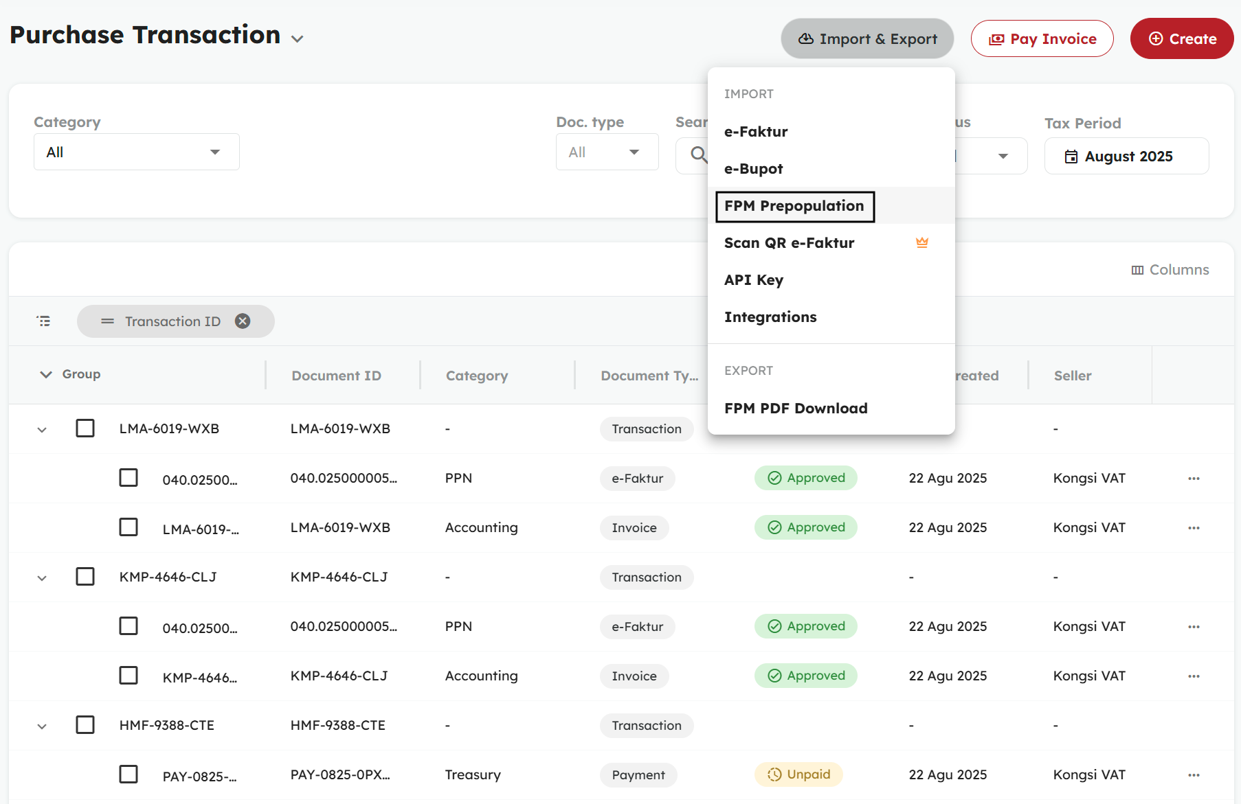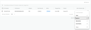 - Untuk menyetujui FPM Masukan, klik ikon tiga titik di sisi kanan transaksi, lalu pilih opsi “Approve”.