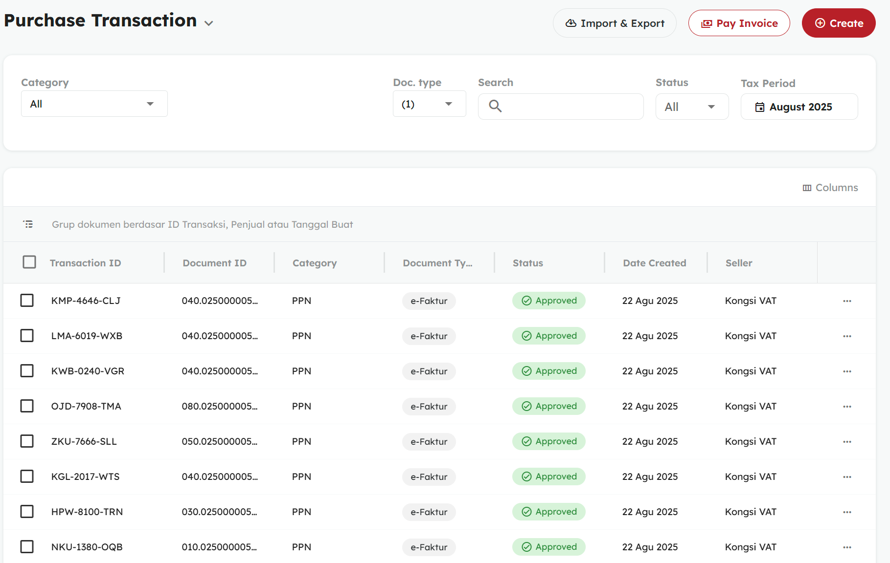 - Pantau status transaksi Anda pada halaman list transaksi Pembelian