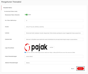 Lengkapi informasi nama dan jabatan yang akan ditampilkan pada faktur.