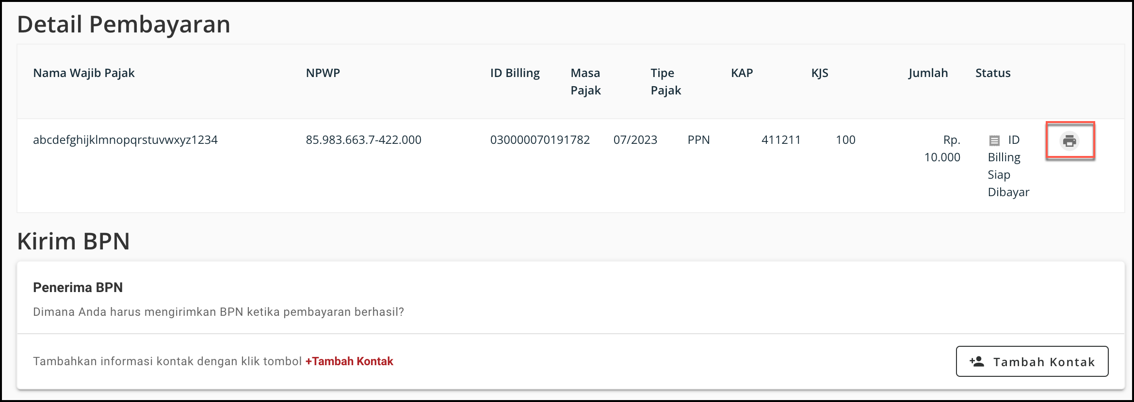 Untuk mencetak ID Billing yang telah Anda buat, silakan mengikuti langkah berikut: