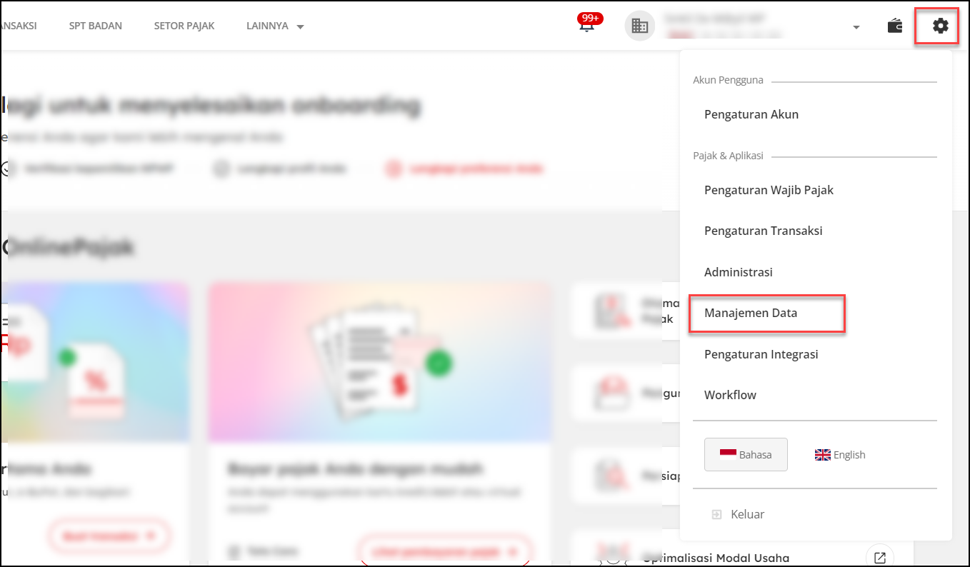 - Pada menu utama, klik menu Gear, lalu pilih menu Manajemen Data,