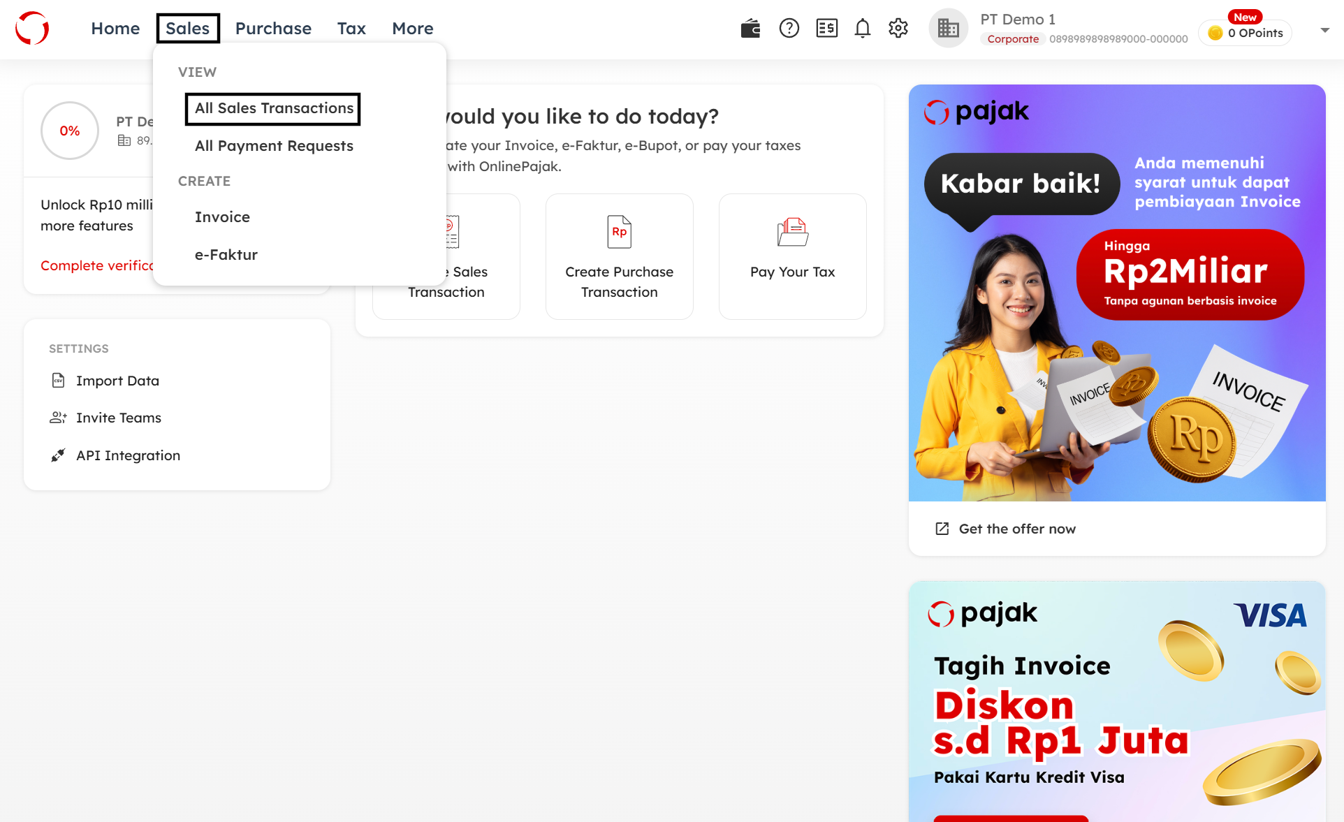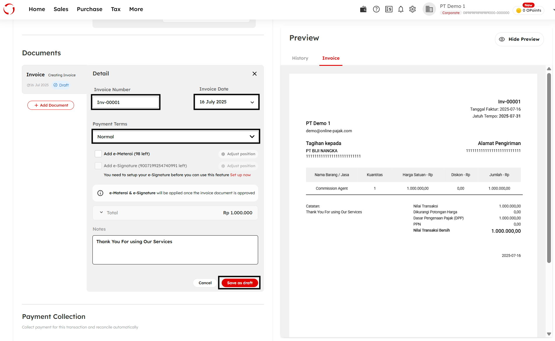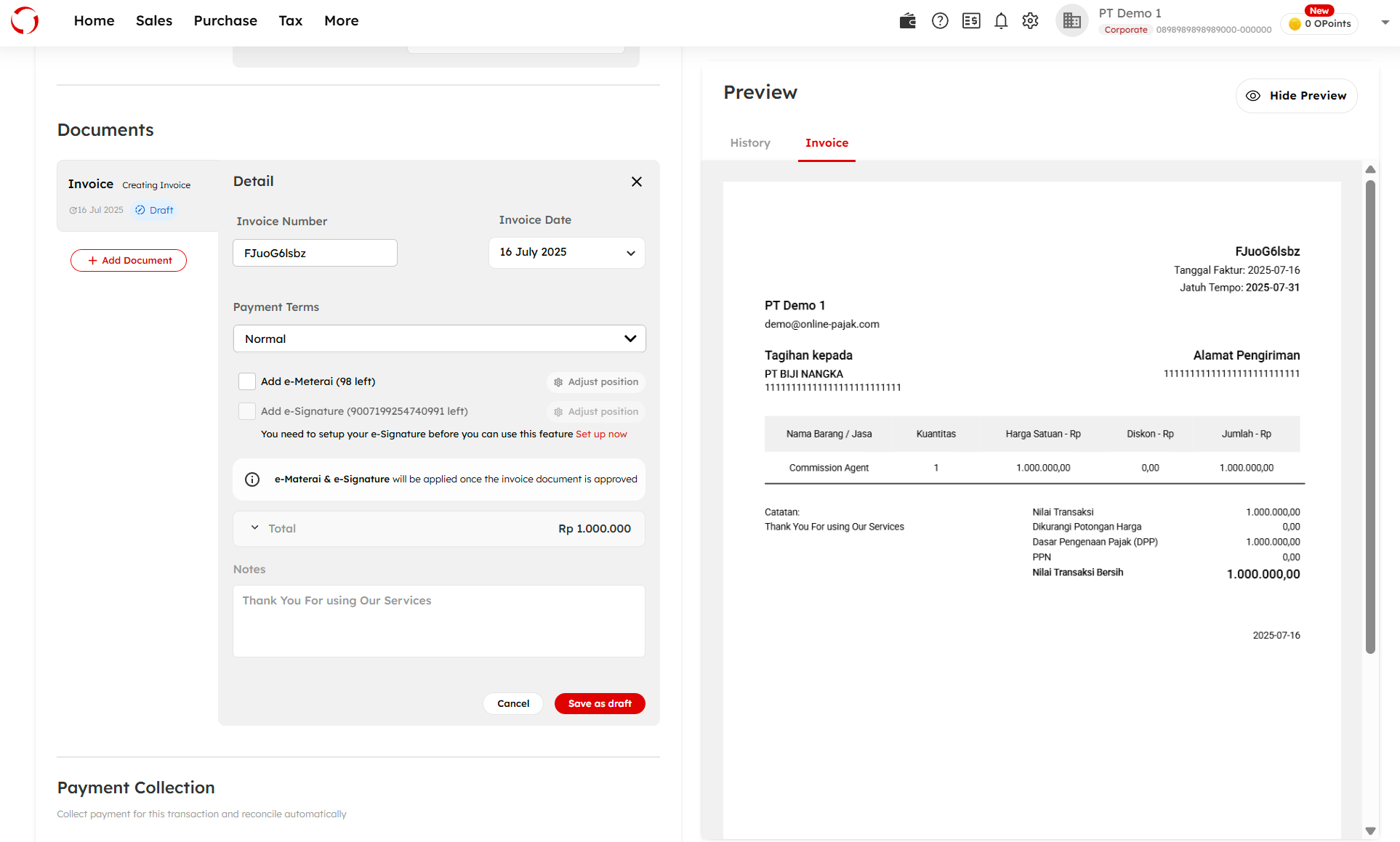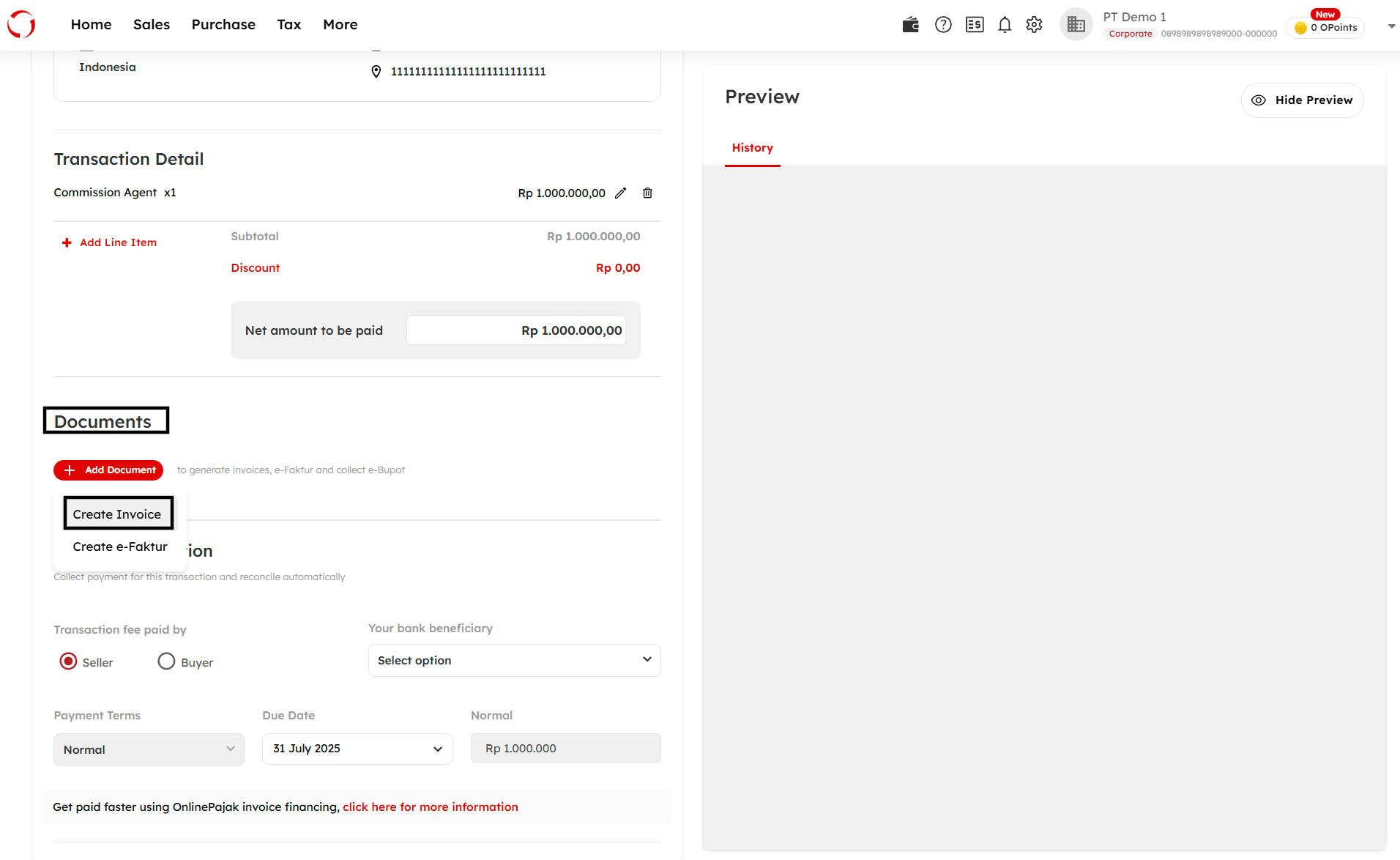 To assist you in completing commercial invoices, we have prepared an easy-to-use platform. Here is a guide on how to create a Commercial Invoice using the OnlinePajak application.