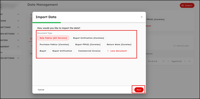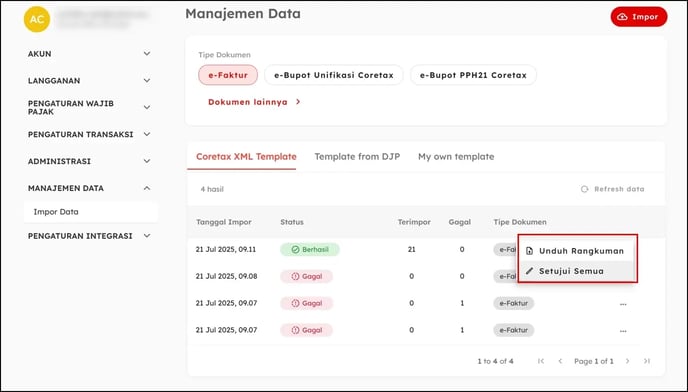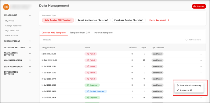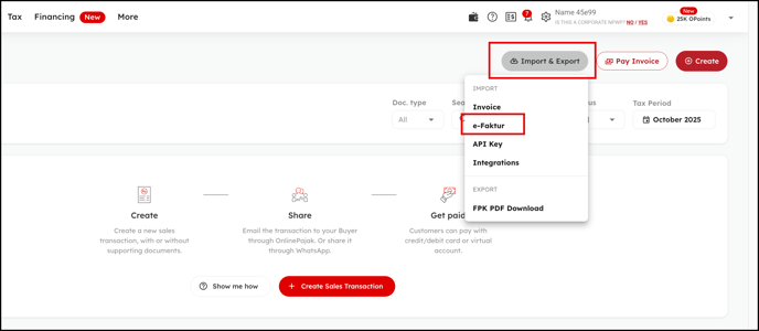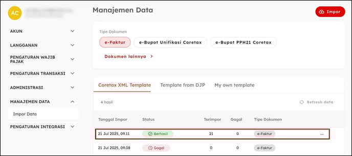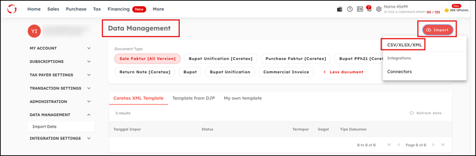 If you have documents such as Commercial Invoices, e-Faktur, eBupot, or unified eBupot in CSV, XLSX, or XML format, you can import them into the OnlinePajak system by following the steps below: