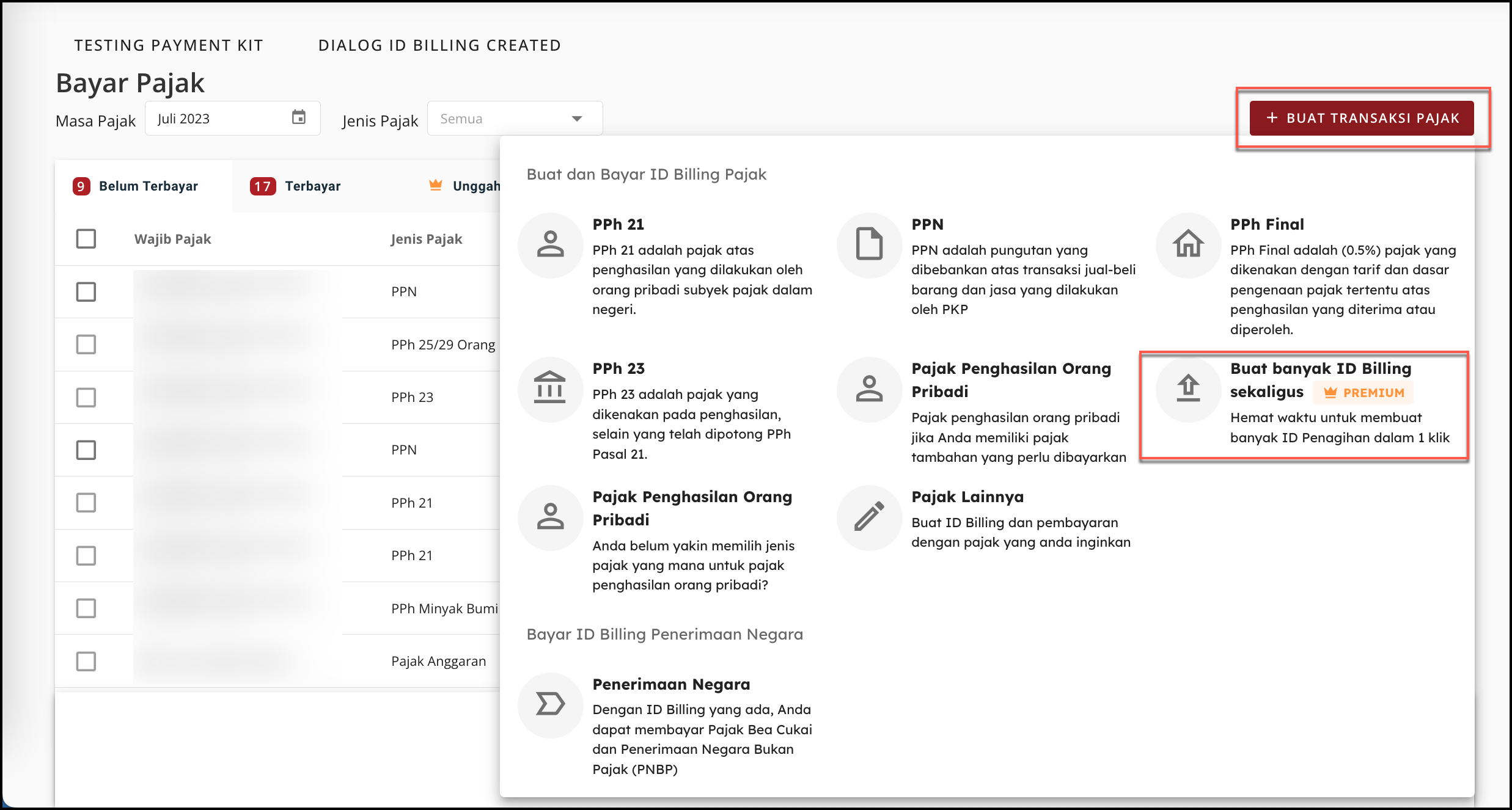 Please note: ini merupakan fitur premium yang disediakan OnlinePajak baik untuk Badan maupun Konsultan. Anda dapat pelajari lebih lanjut pada Bulk ID Billing.