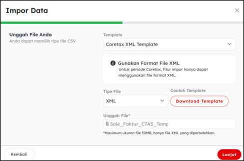 Anda juga dapat mengunduh template XML dari halaman yang sama jika diperlukan.