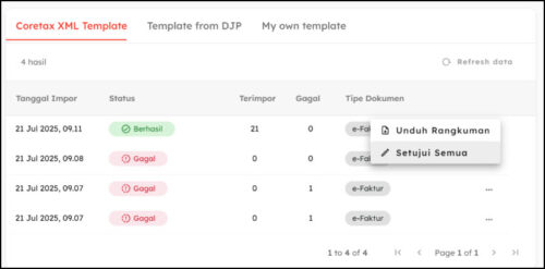 Melalui halaman hasil impor dengan klik Setujui Semua