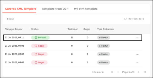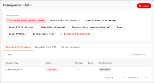 Klik tombol Impor & Ekspor, lalu pilih tipe dokumen eFaktur.