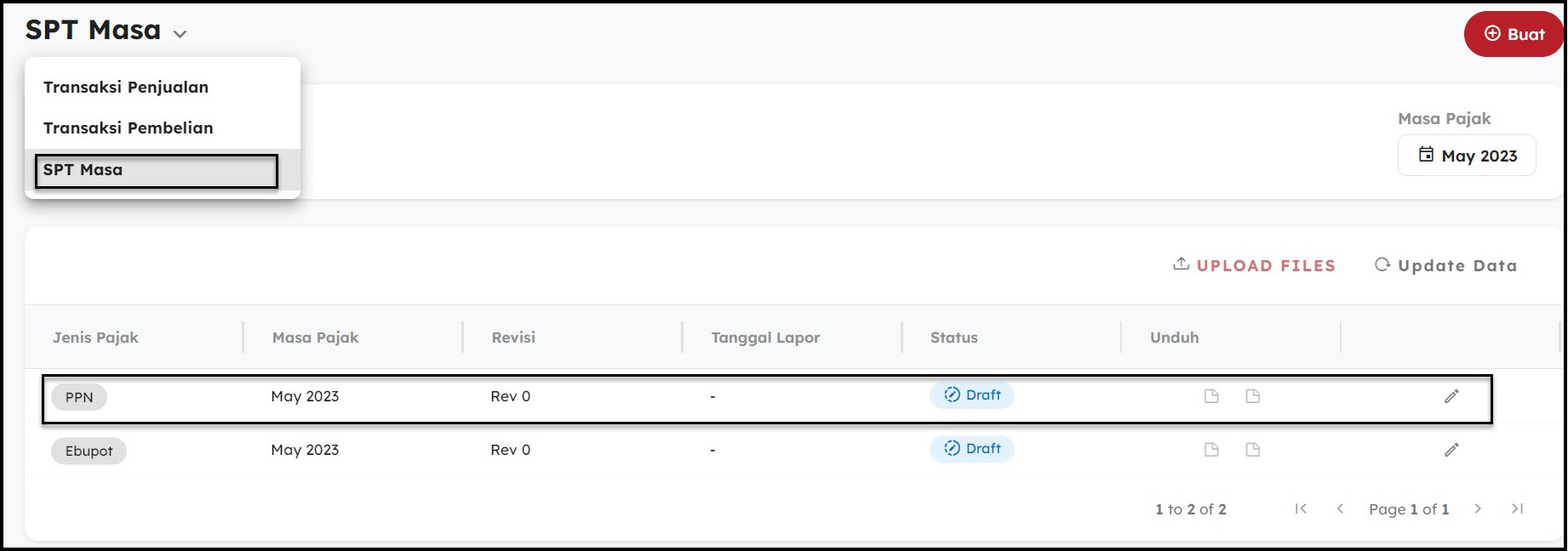 Klik Tombol SPT Masa – Pilih Jenis Pajak PPN – Klik Icon Edit/Update