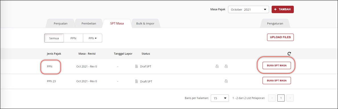 SPT Masa PPN harus dilapor setiap bulannya, walaupun tidak ada perubahan neraca, atau nilai Rupiah pada masa pajak terkait nihil (0). Jatuh tempo pelaporan adalah pada hari terakhir (tanggal 30 atau 31) bulan berikutnya setelah akhir masa pajak yang bersangkutan.