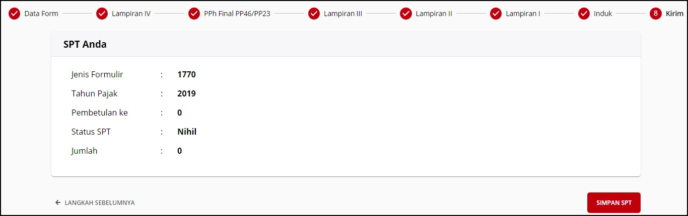 10. Periksa kembali SPT Anda, jika sudah klik “Simpan SPT”