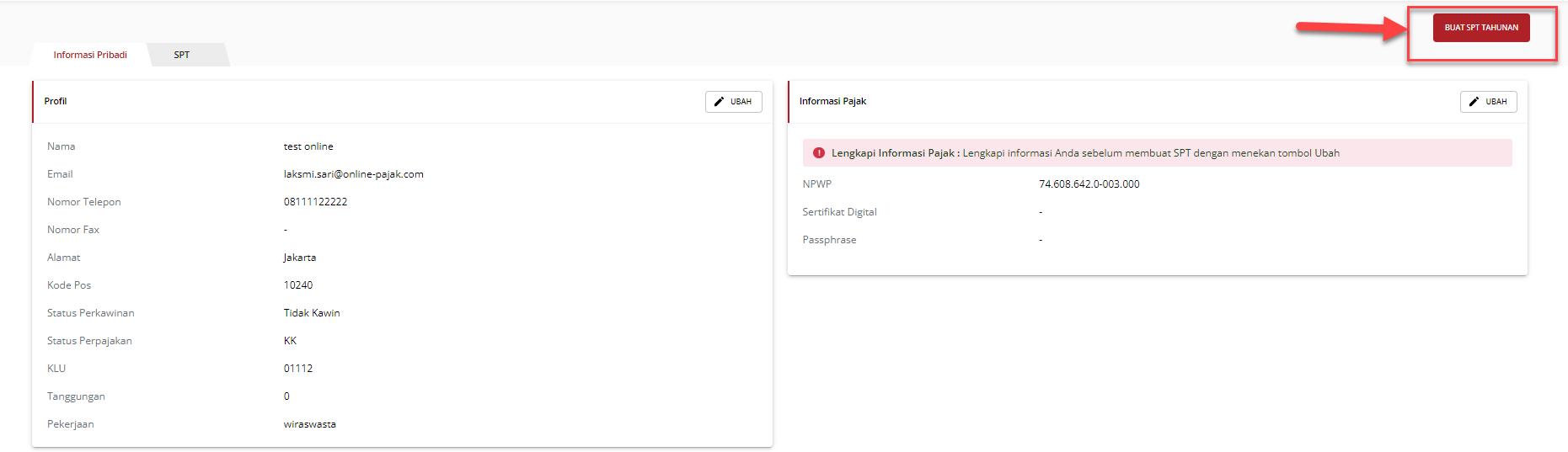 4. Jika Sudah Klik tombol “Buat SPT Tahunan” atau “Create SPT”