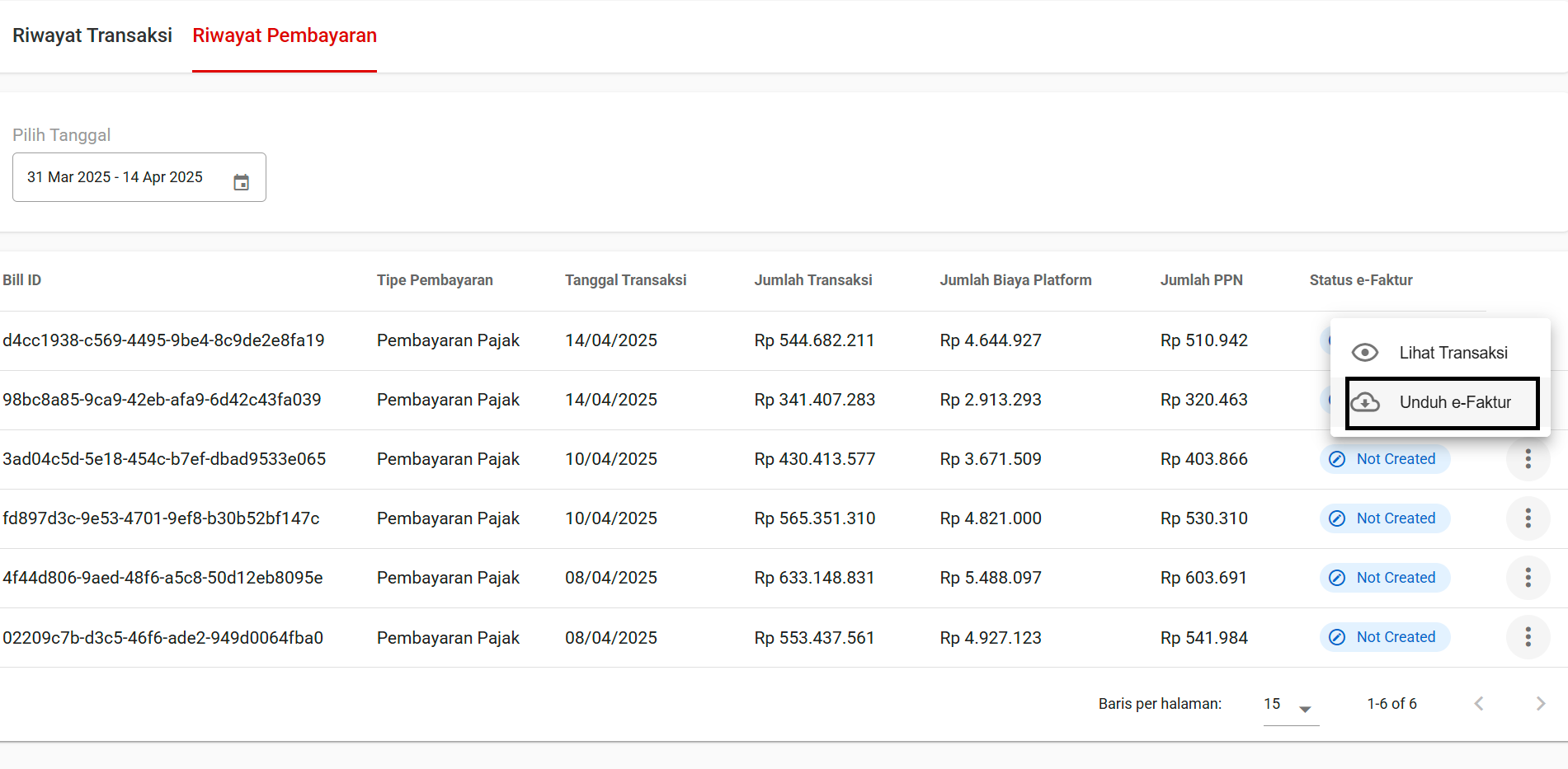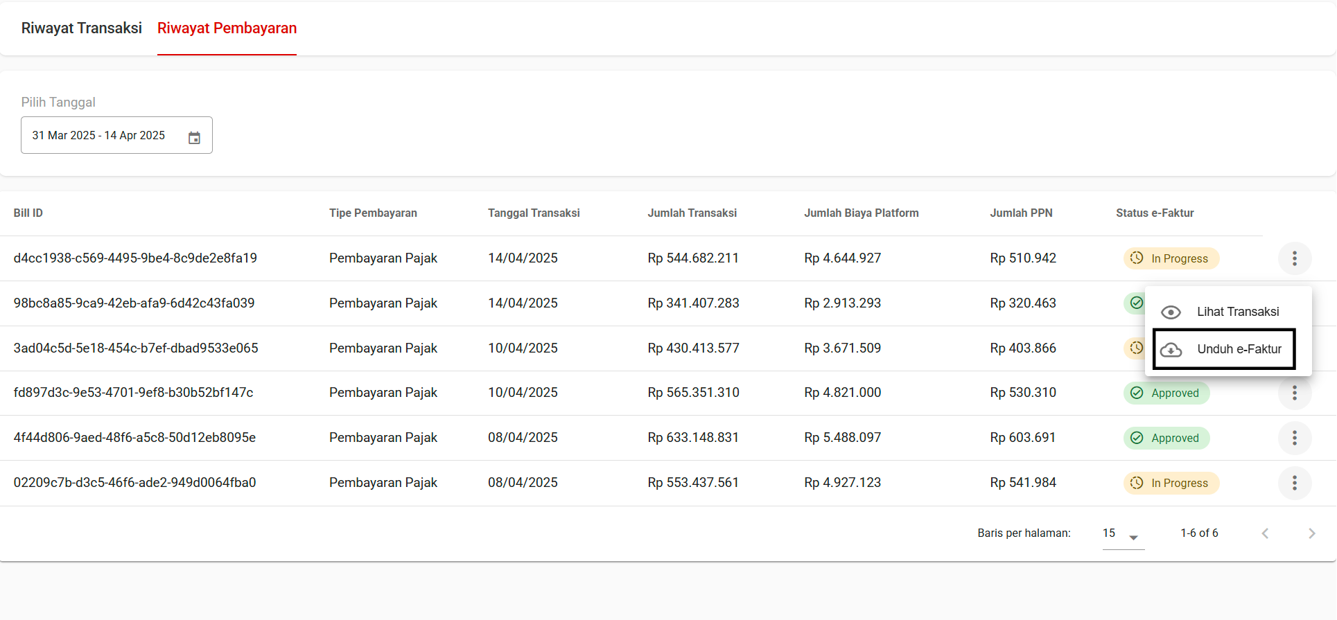 Untuk mengunduh faktur atas Transaksi Pajak dan melihat detail transaksi yang dibuat melalui aplikasi OnlinePajak, ikuti langkah-langkah berikut: