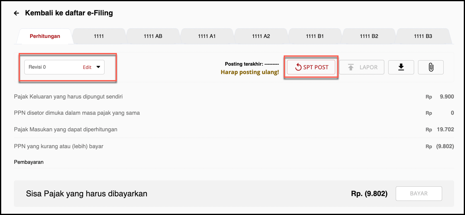 - Klik tombol Posting SPT untuk menghitung ulang pajak;
