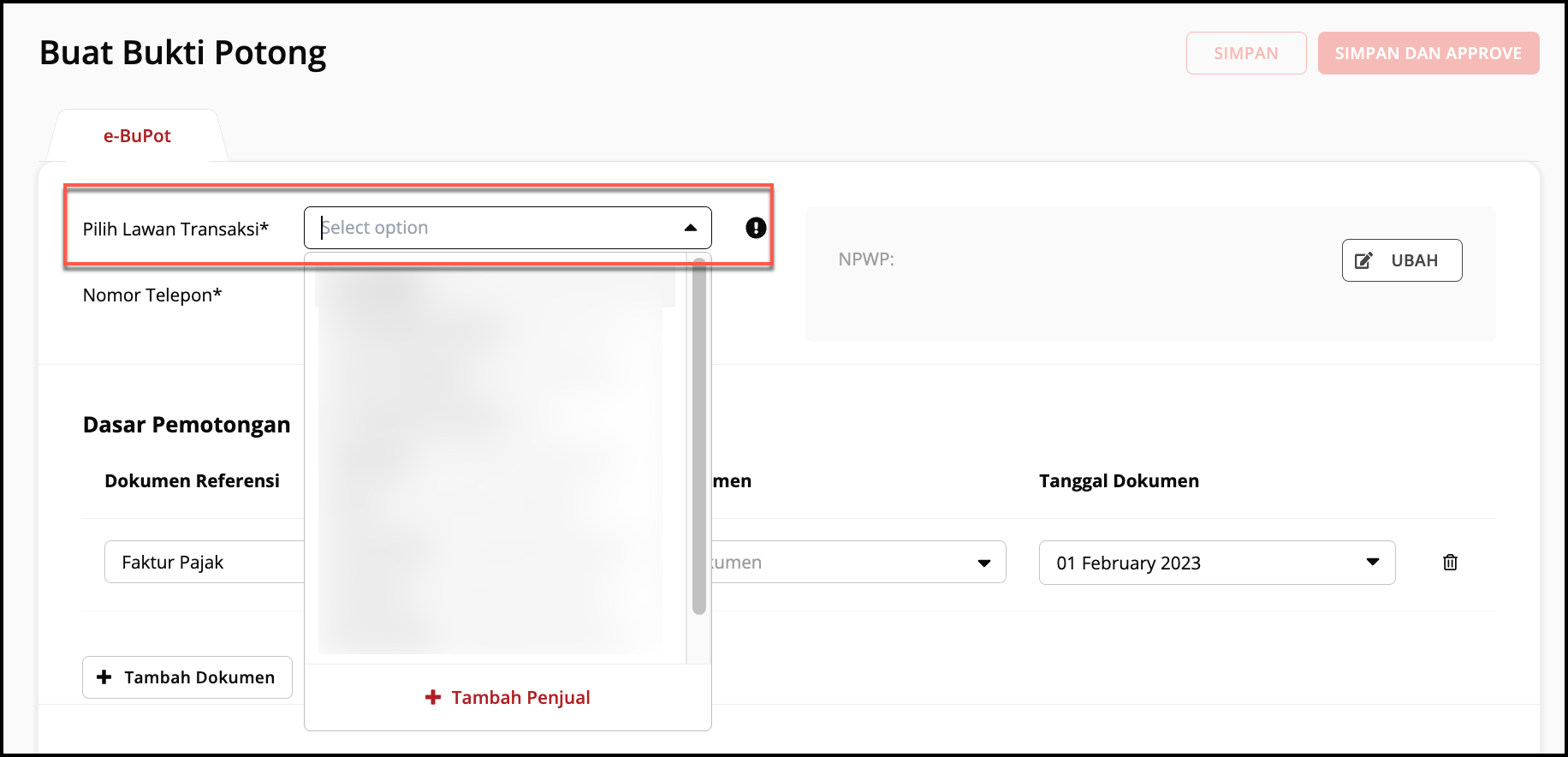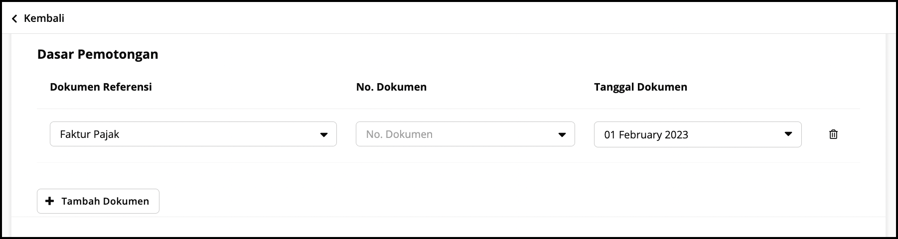 - Lengkapi Dokumen referensi yang menjadi Dasar Pemotongan