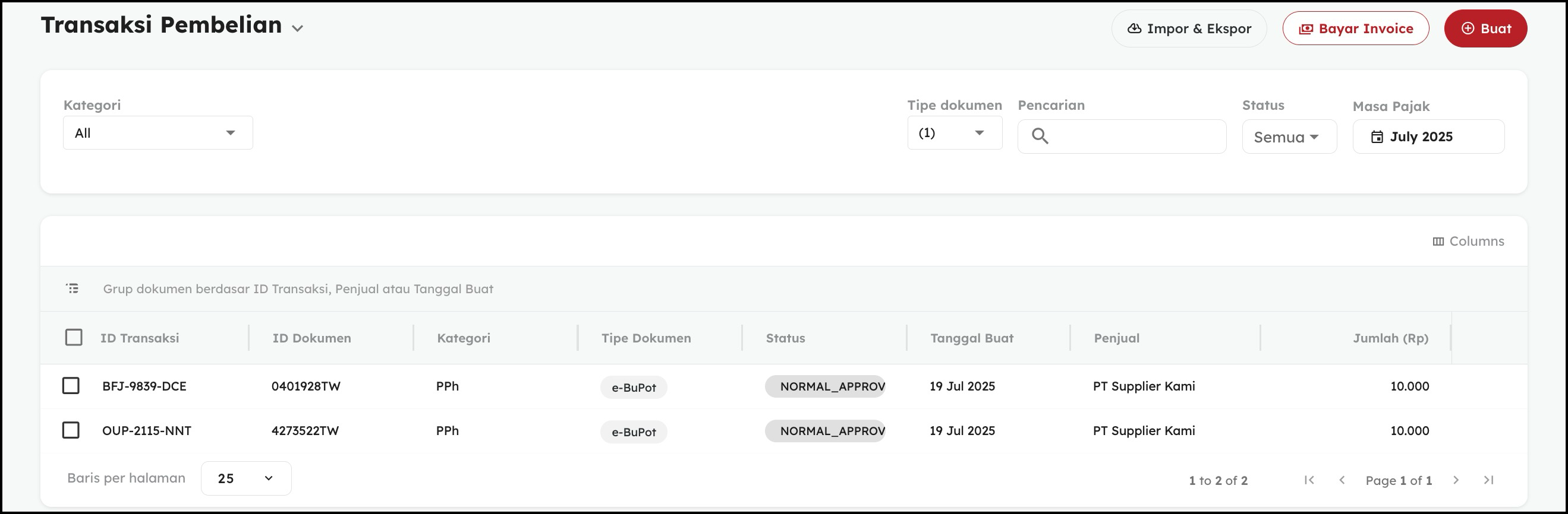 - Bukti Potong yang telah Anda buat dan berhasil, statunya akan menjadi Approved.