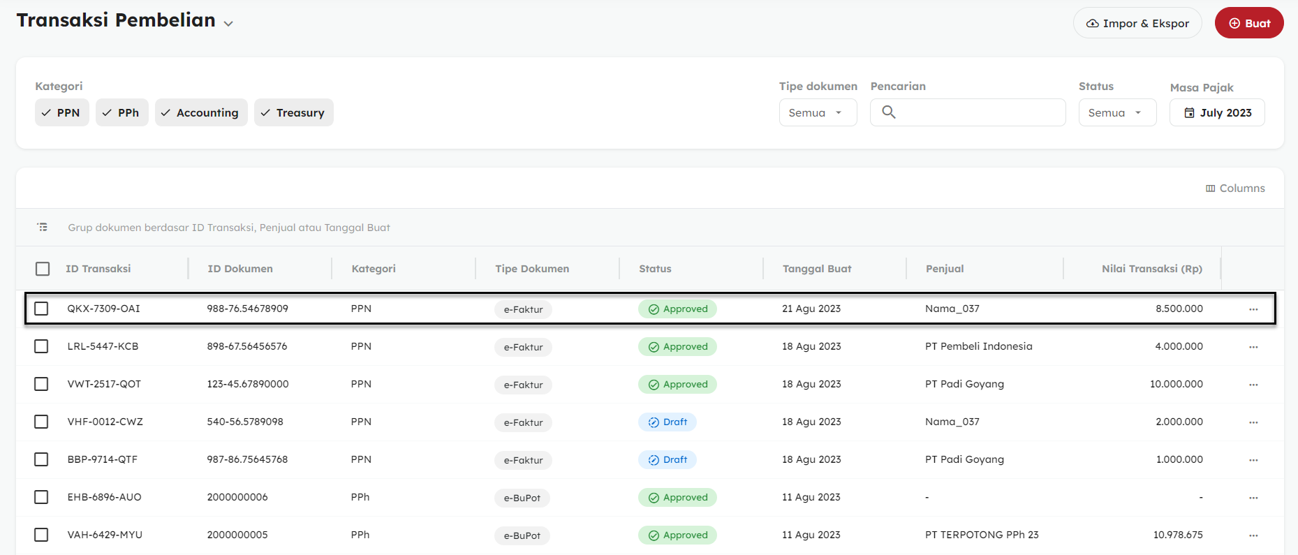 - Login ke OnlinePajak dan Masuk ke Menu Transaksi Pembelian
