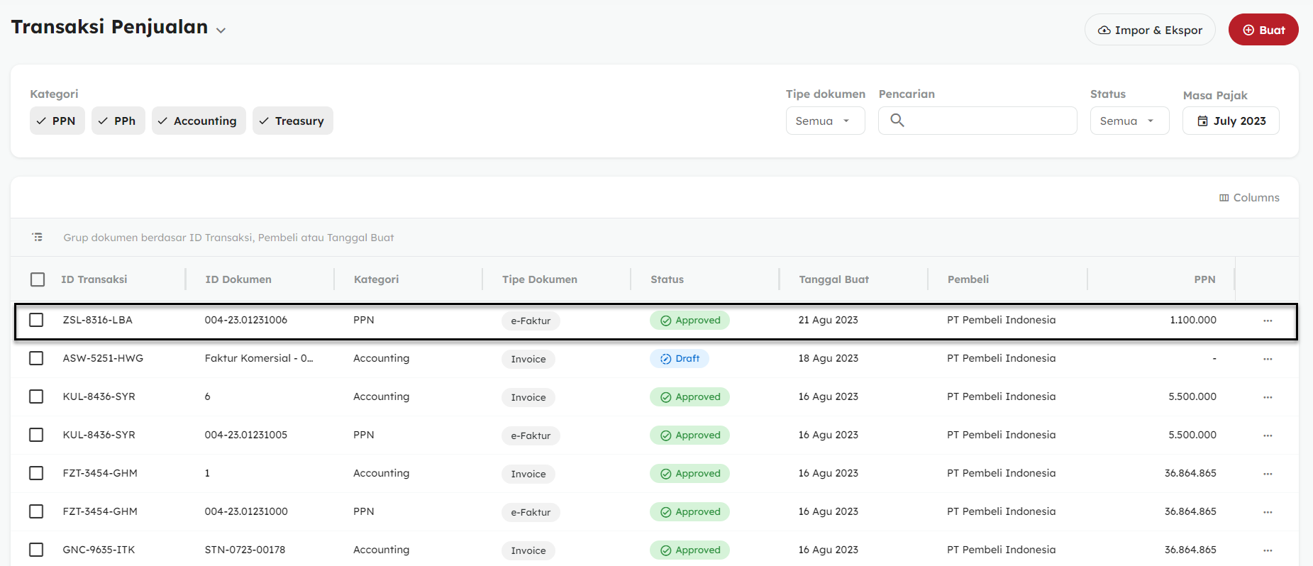 - Login ke OnlinePajak dan Masuk ke Menu Transaksi Penjualan